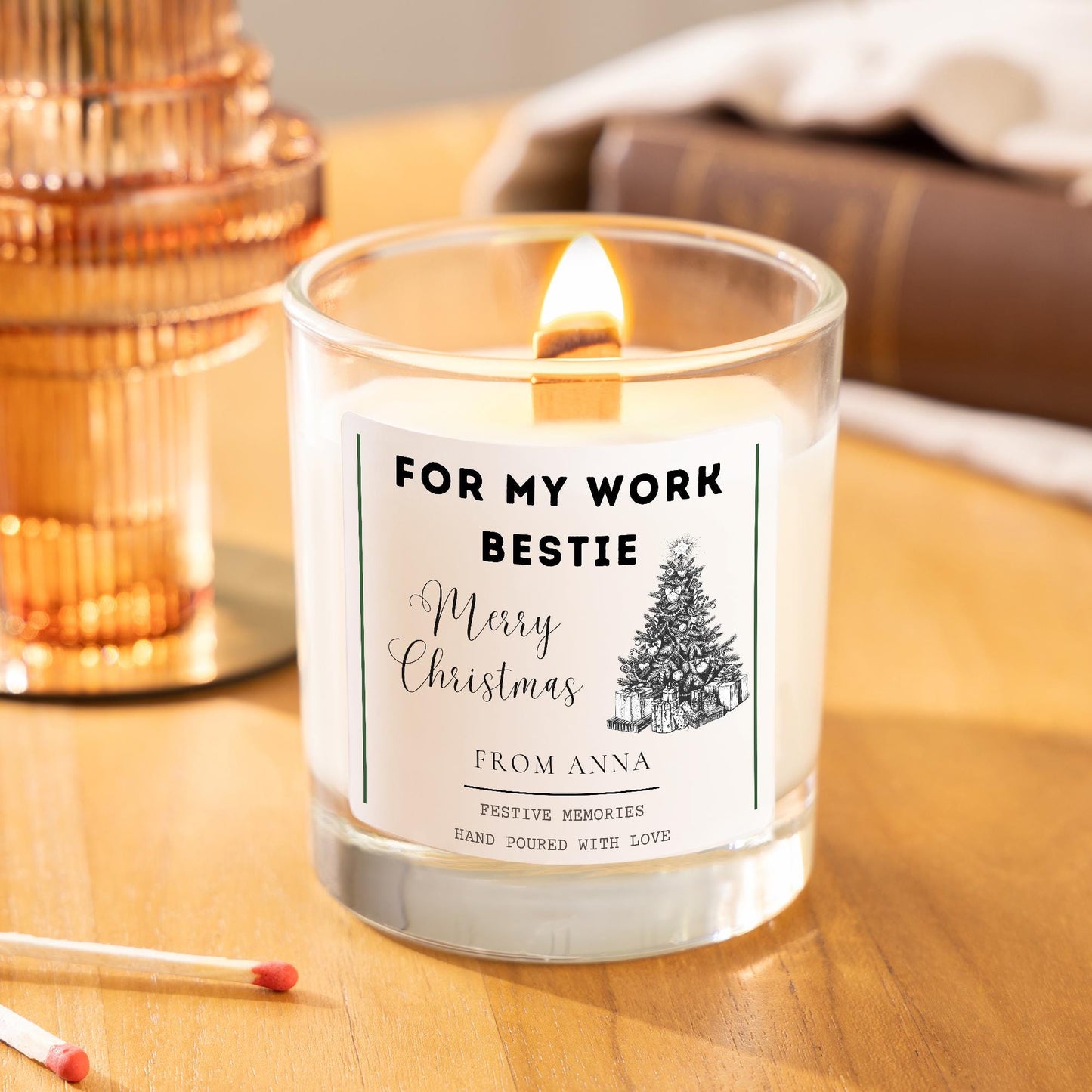 Celebrate the season with the perfect team member personalised Christmas gift! Our festive candle is designed to brighten up any office and makes a thoughtful Office BFF Christmas gift. Whether you’re searching for a unique Christmas candle gift for your work bestie or a thoughtful coworker Christmas present, this handmade candle is sure to spread some holiday cheer.